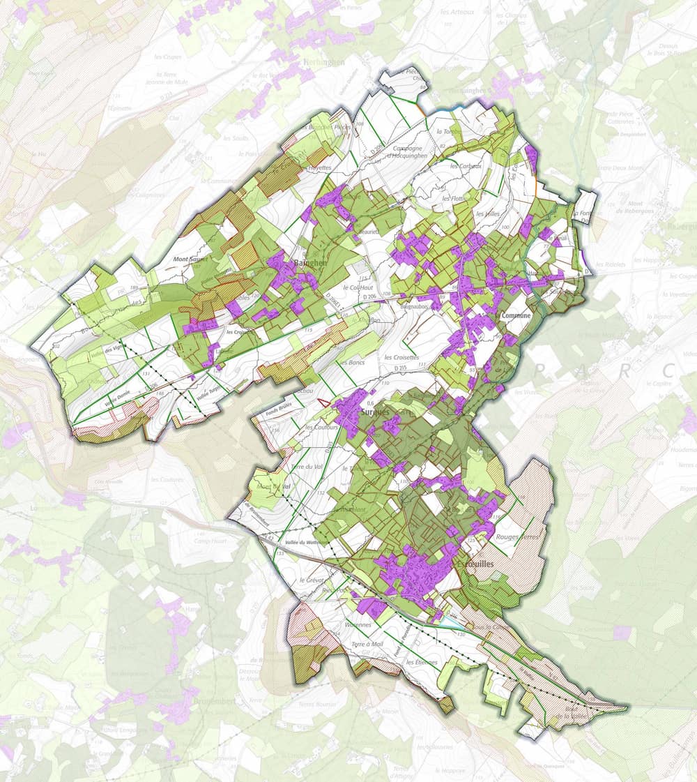 Le projet des communes de Bainghen, Surques et Escœuilles est principalement orienté vers des objectifs de valorisation du caractère bocager, la limitation du ruissellement, la trame verte et bleue et la randonnée.