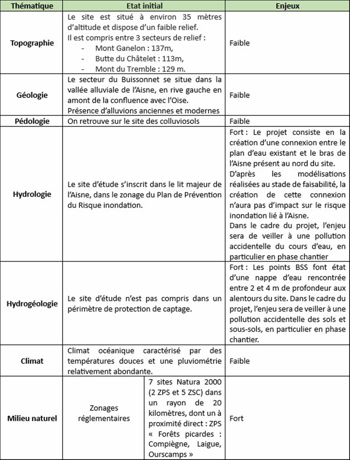 Parallèlement à la rédaction d’un Dossier Loi sur l’Eau relatif à l’ouverture du bassin existant à l’Aisne, une étude d’impact a été rédigée.