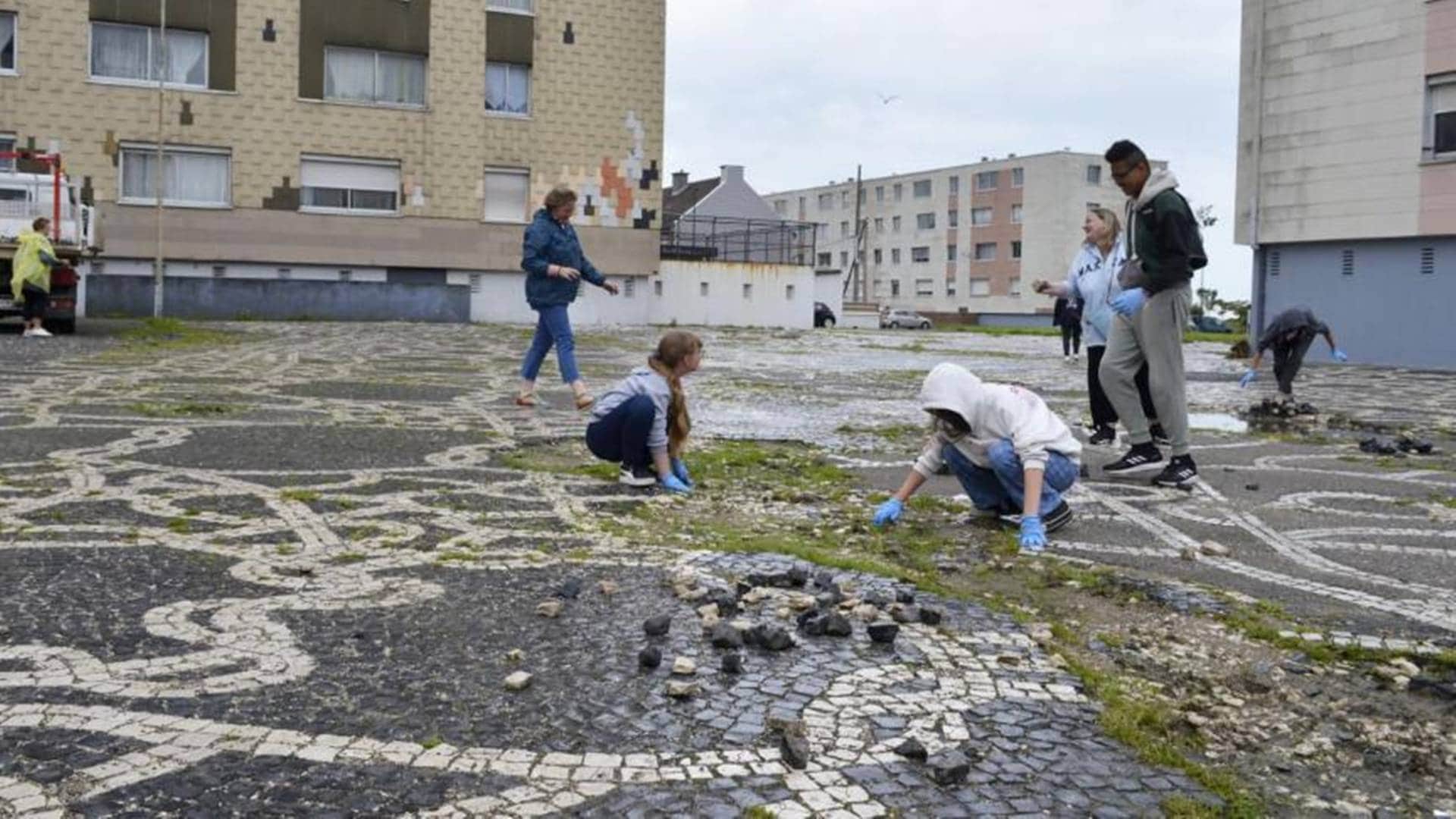 Une collaboration s’est mise en place avec Yann Lestrat (artiste plasticien) quant à la requalification de l’œuvre. Le projet de conserver la grille originelle, la réinterprète via un système de dalles en béton balayé incrustées de modules végétalisés : ces espaces plantés sont délimités par des lignes qui reprennent le motif de la dentelle de la mosaïque.
